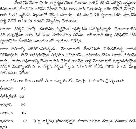 TRS Leads in Telangana
