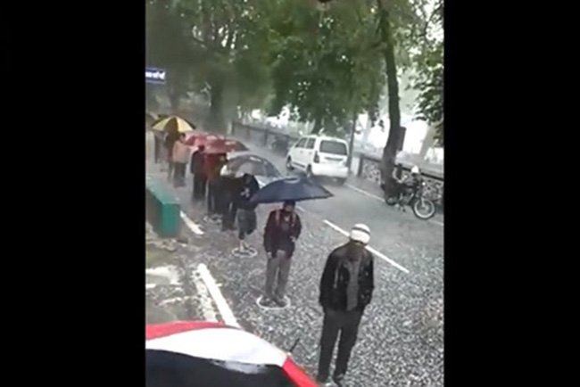 నైనిటాల్ లోని ఒక వైన్ షాపు బయట మందుబాబులు నిలుచున్నారు. వారికి కేటాయించిన సర్కిల్స్ లోనే ఉంటూ.. జోరు వానకు తడవకుండా ఉండేందుకు గొడగుల్ని రక్షగా పెట్టుకున్నారు. అయినప్పటికి జోరుగా కురుస్తున్న వానలో తడుస్తున్నా సరే.. పక్కకు వెళ్లే ప్రయత్నం చేయలేదు. వాస్తవానికి వడగళ్ల వాన షురూ అయిన వెంటనే.. మద్యం కోసం క్యూలో నిలుచున్న వారు వెళ్లిపోతారని సదరు షాపు యజమాని భావించినా.. కస్టమర్లు మాత్రం మందు పట్ల తమకున్న కమిట్ మెంట్ ను ప్రదర్శిస్తూ ఉండిపోయారు.