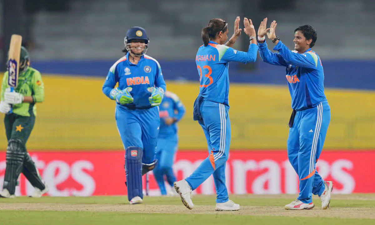 మధ్యప్రదేశ్ పేసర్ క్రాంతి గౌడ్ బౌలింగ్ పాకిస్థాన్ తో మ్యాచ్ లో హైలైట్. 10 ఓవర్లలో 20 పరుగులే ఇచ్చి మూడు వికెట్లు తీసింది. పాక్ ఓపెనర్ సదాఫ్ షమాస్ (6), అలియా రియాజ్ (2)లను మొదట్లోనే ఔట్ చేసింది. క్రాంతి ధాటికి పాక్ ఛేజింగ్ లో వెనుకబడి పోయింది. సిద్రా అమీన్ (81) ప్రయత్నించినా పాక్ ను గెలిపించలేకపోయింది. 43 ఓవర్లలో 159 పరుగులకే ఆ జట్టు చేతులెత్తేసింది. అమీన్ తో పాటు నటాలియా (33), సిద్రా (14) మాత్రమే డబుల్ డిజిట్ స్కోర్లు చేశారు. దీప్తి శర్మ (3/45), స్నేహ్ రాణా (2/38) బౌలింగ్ లోనూ రాణించారు.
