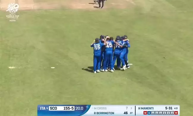 ఒకదాంట్లో ఫలితం రాలేదు. దీంతో గ్రూప్ టాపర్గా ఉంది. స్కాట్లాండ్తో మ్యాచ్లో టాస్ గెలిచి బ్యాటింగ్ ఎంచుకున్న ఇటలీకి ఓపెనర్ ఎమిలియో గే 21 బంతుల్లోనే అర్ధ సెంచరీ సాధించి శుభారంభం అందించాడు. హ్యారీ మానెంటి (38 బంతుల్లో 38), గ్రాంట్ స్టీవర్ట్ (27 బంతుల్లో 44) రాణించారు. 168 పరుగుల లక్ష్యాన్ని ఛేదించే క్రమంలో స్కాట్లాండ్ ఓపెనర్ జార్జ్ మున్సే (61 బంతుల్లో 72 పరుగులు) ఇన్నింగ్స్ గెలిపించేదిగా కనిపించింది. మానెంటి ఐదు వికెట్లు తీయడంతో నిర్ణీత 20 ఓవర్లలో 155/5 వద్ద ఆగిపోయింది.