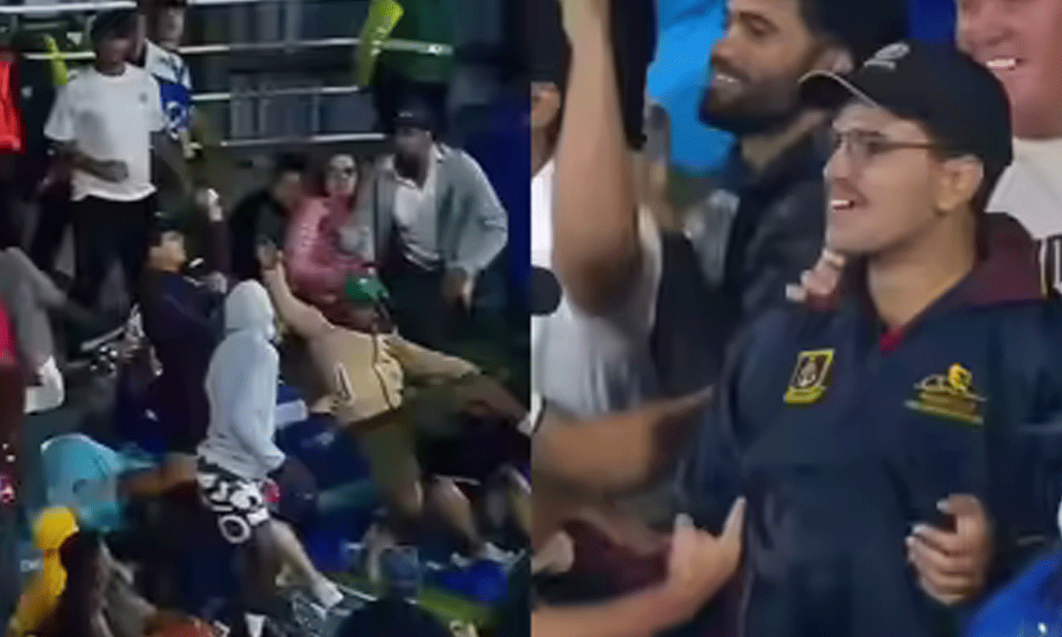 సౌతాఫ్రికా టీ20 లీగ్ 2025-26 సీజన్ ప్రారంభ మ్యాచ్ డర్బన్ సూపర్ జెయింట్స్, ఎంఐ కేప్ టౌన్ మధ్య జరిగింది. తొలుత బ్యాటింగ్ చేసిన డర్బన్ జట్టు 232 పరుగుల భారీ లక్ష్యాన్ని నిర్ధేశించింది. లక్ష్య ఛేదనలో ఎంఐ కేప్ టౌన్ బ్యాటర్ ర్యాన్ రికెల్టన్ ఆకాశమే హద్దుగా చెలరేగిపోయాడు. మ్యాచ్ 13వ ఓవర్లో మఫాక వేసిన బంతిని రికెల్టన్ భారీ సిక్సర్ గా మలిచాడు. ఆ బంతి నేరుగా స్టాండ్స్ లోకి వెళ్లగా.. అక్కడ ఉన్న ఒక అభిమాని అత్యంత అప్రమత్తంగా వ్యవహరించి ఒంటిచేత్తో ఆ బంతిని అందుకున్నాడు. దీంతో స్టేడియం మొత్తం ఒక్కసారిగా హోరెత్తిపోయింది.