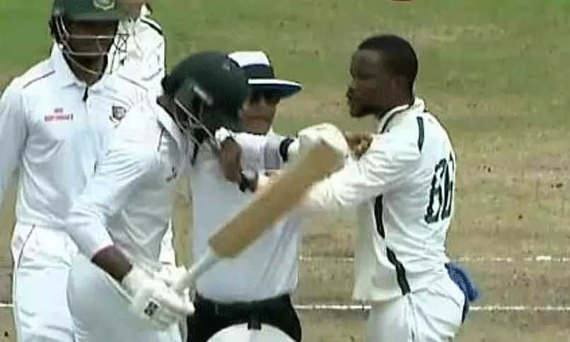 దక్షిణాఫ్రికా ఎమర్జింగ్ (వర్ధమాన) జట్టు ప్రస్తుతం బంగ్లాదేశ్ లో పర్యటిస్తోంది. బంగ్లాదేశ్ ఎమర్జింగ్ టీమ్ తో నాలుగు రోజుల మ్యాచ్ ఆడుతోంది. గురువారం మ్యాచ్ సందర్భంగా దక్షిణాఫ్రికా బౌలర్ షెపో ఎంటులి.. బంగ్లా బ్యాటర్ రిపాన్ మెండాల్ మధ్య తీవ్ర ఘర్షణ జరిగింది. ఎంటులి బౌలింగ్ లో రిపాన్.. సిక్స్ కొట్టగా నాన్ స్ట్రయికర్ గా ఉన్న బంగ్లా జాతీయ ఆటగాడు మెహదీ హసన్ అతడిని అభినందించాడు. దీంతో ఎంటులి ఆగ్రహానికి గురయ్యాడు. ఇద్దరి మధ్య వాగ్వాదం జరిగింది. చివరకు అది.. నెట్టుకోనేవరకు దారితీసింది. రిపాన్ ఛాతీపై కొట్టిన ఎంటులి.. తల (హెల్మెట్ )పైనా రెండుసార్లు కొట్టాడు.