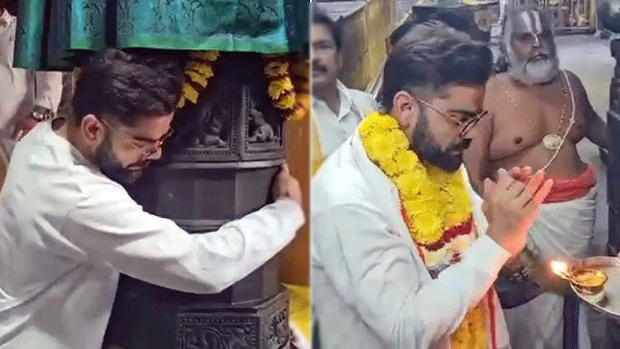 By: Satya P | 8 Dec 2025 12:38 AM ISTటీమిండియా జట్టులో కీలక ఆటగాడు విరాట్ కోహ్లీ సింహాద్రి అప్పన్న దర్శనం చేసుకుని వ్యక్తం చేసిన అక్షర భావమిది. ఆయన దేవస్థానం పుస్తకంలో ఈ మేరకు రాసి మరీ తన భక్తిని ఆ దేవ దేవుడి మీద చాటుకున్నారు. దేవస్థానం వారు అందించిన పుస్తకమలో విరాట్ కోహ్లీ తన భక్తిని చాటుకుంటూ అప్పన్న అనుగ్రహించాడు అని ఆయన ఇంగ్లీష్ లో రాసి అక్షర నీరాజనాలు అర్పించారు. ఆదివారం సింహాచలం లోని సుప్రసిద్ధమైన అప్పన్న ఆలయానికి వచ్చిన విరాట్ కోహ్లీ స్వామిని దర్శించుకుని ప్రత్యేక పూజలు చేశారు.